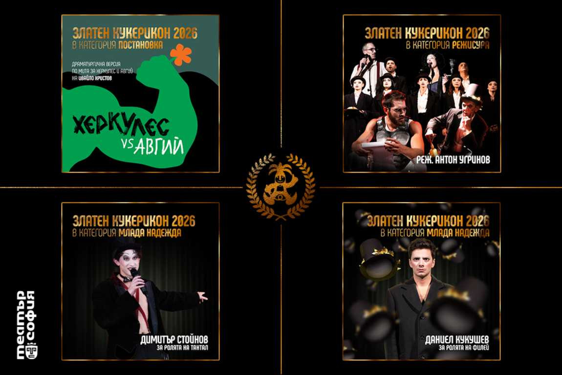 🤩 Най-номинираният спектакъл за тазгодишните Награди „ЗЛАТЕН КУКЕРИКОН“ е „ХЕРКУЛЕС VS АВГИЙ“ с цели 4 номинации!