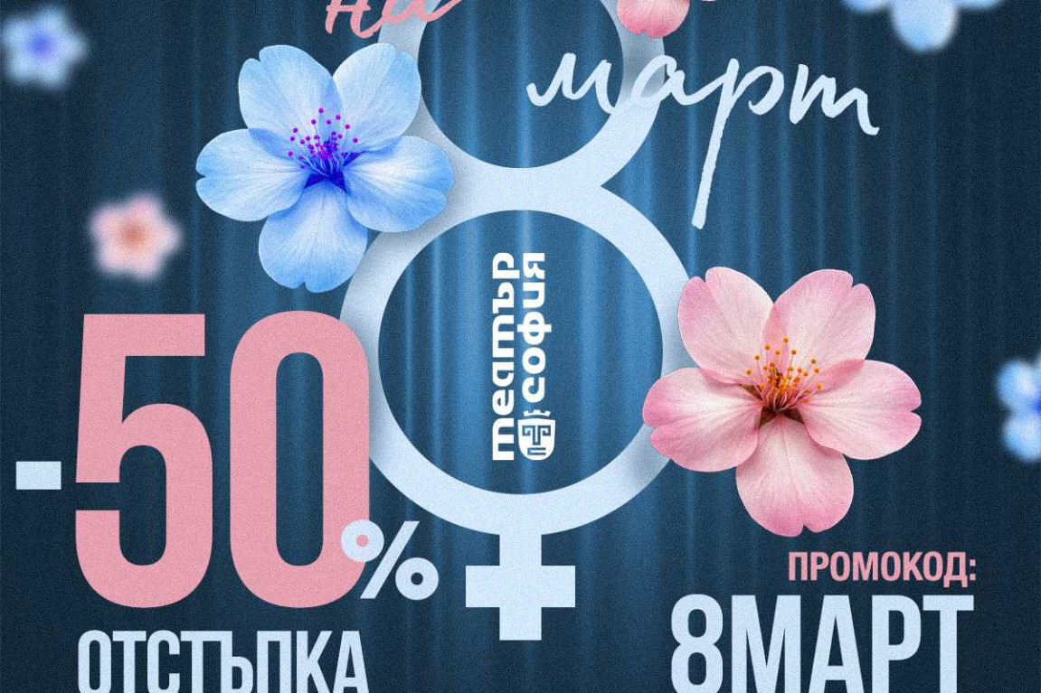 🎁 Само на 8 март може да закупите билети за нашите представления през март, април и май с -50% отстъпка.